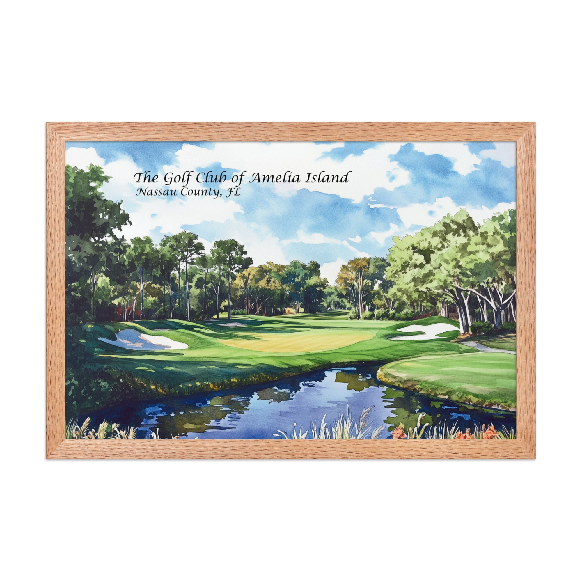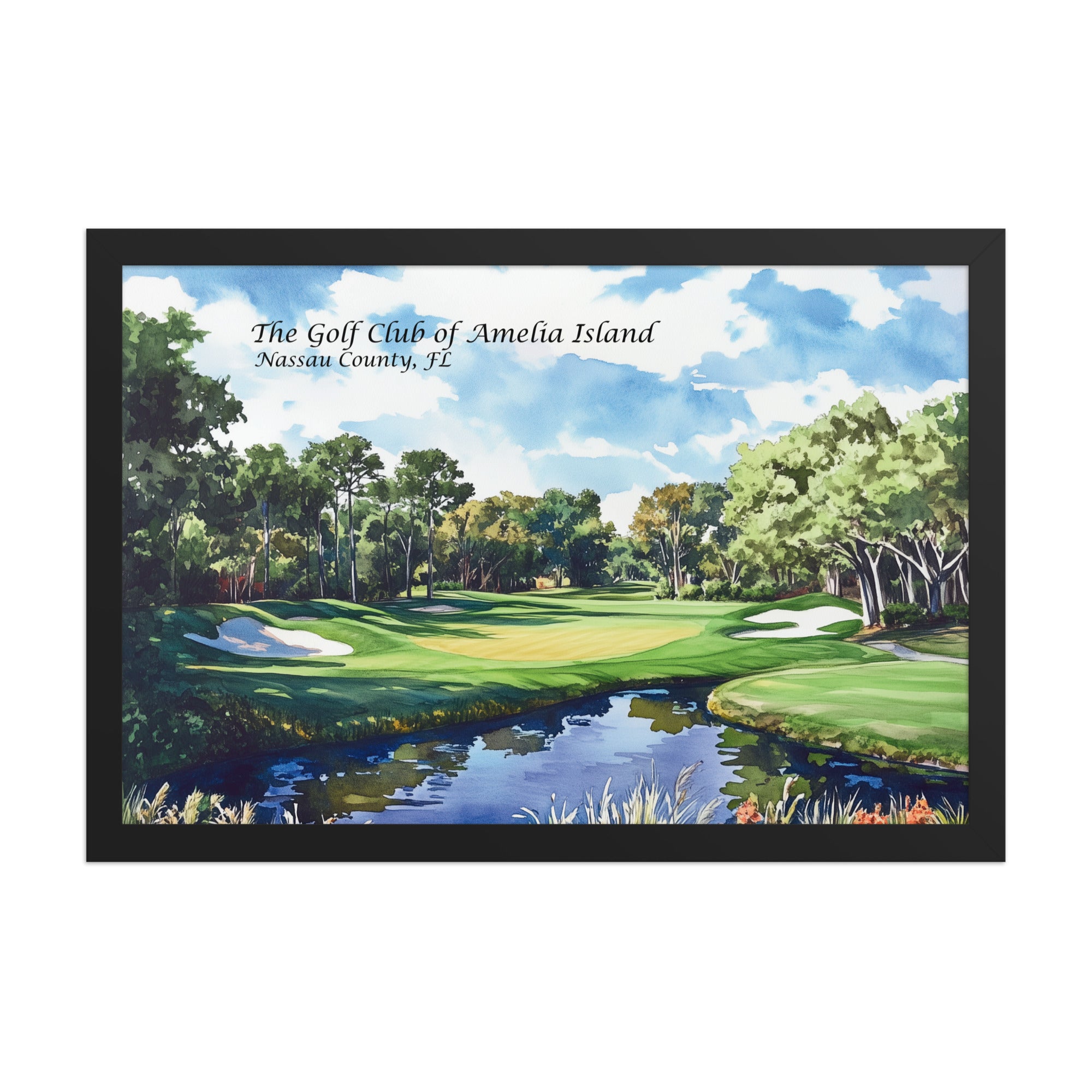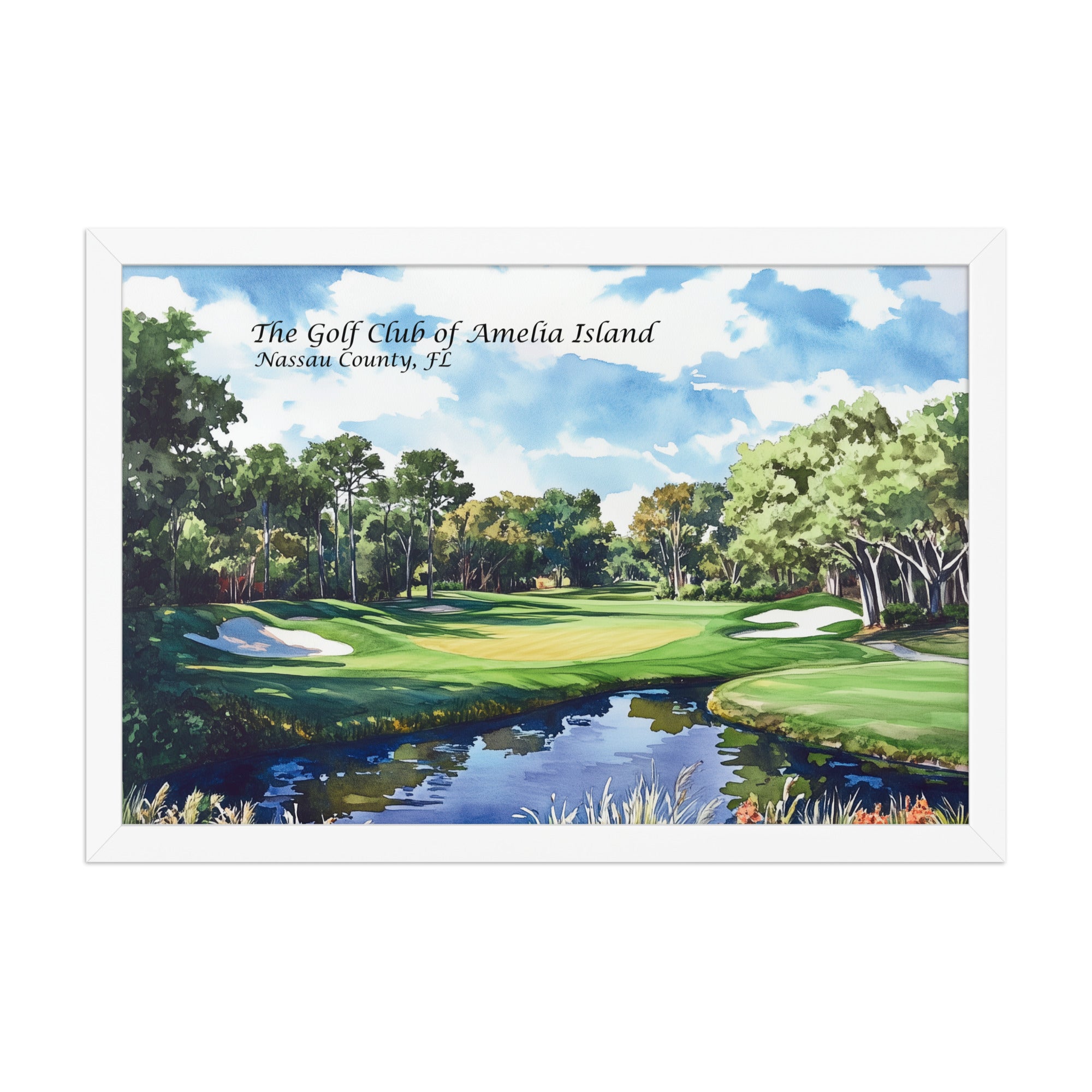 Immerse yourself in the coastal charm of Florida’s barrier islands with this framed watercolor painting overlooking a hole on Amelia Island. With sweeping views of moss-draped oaks, sunlit dunes, and meandering lagoons, the artwork captures the laid-back luxury and natural beauty that define this island golf haven. The artist’s delicate brushwork conveys a sense of calm and connection to nature, while the framed finish makes it display-ready for any home, office, or beachside retreat. Ideal for golf lovers, travelers, or anyone drawn to the easy elegance of Amelia Island living.
